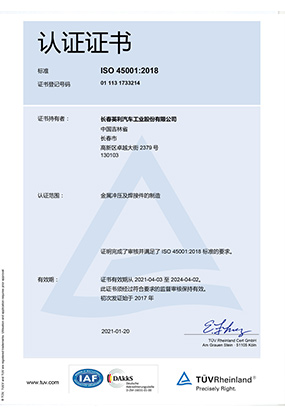 ISO 45001 認證證書